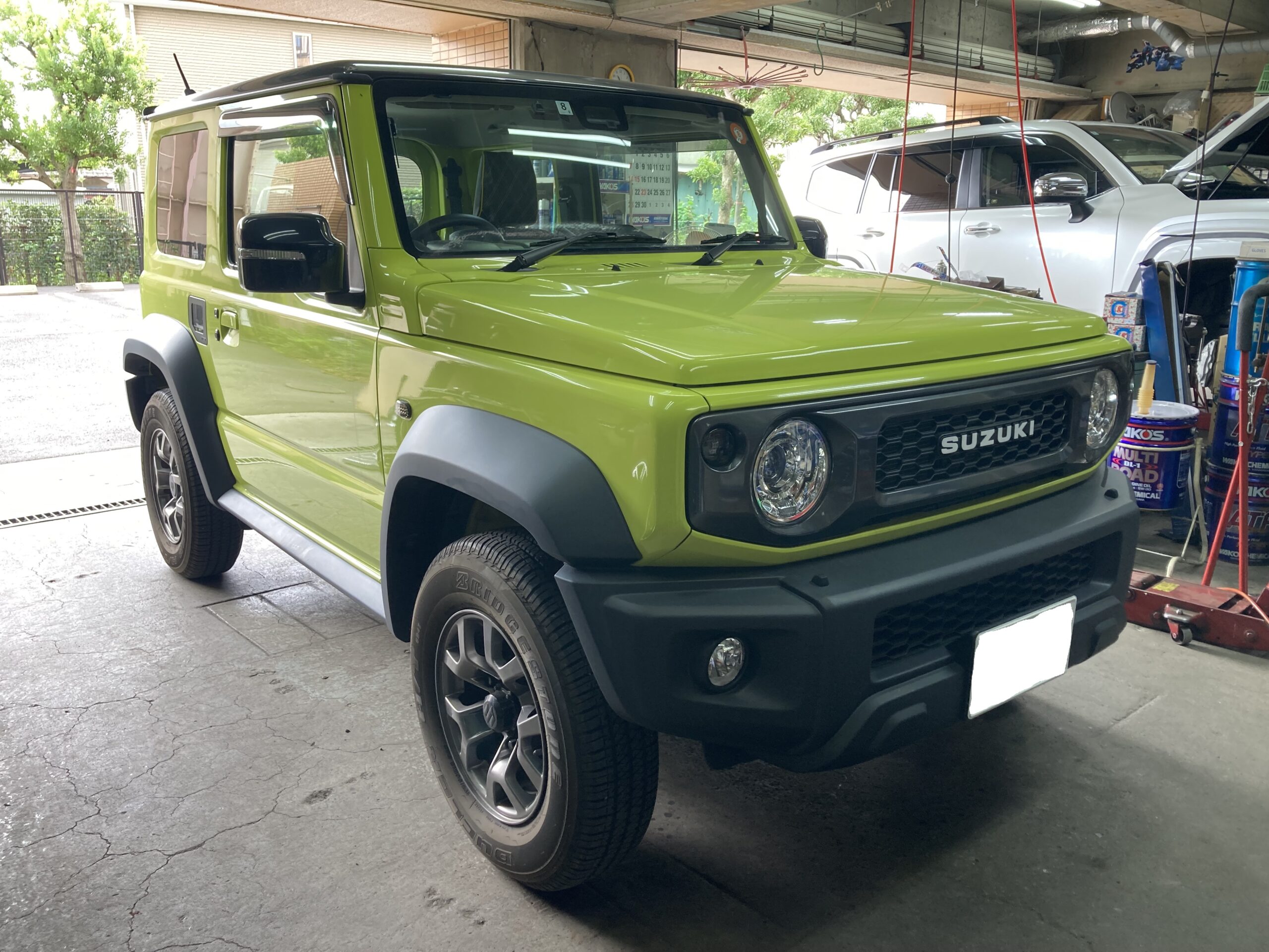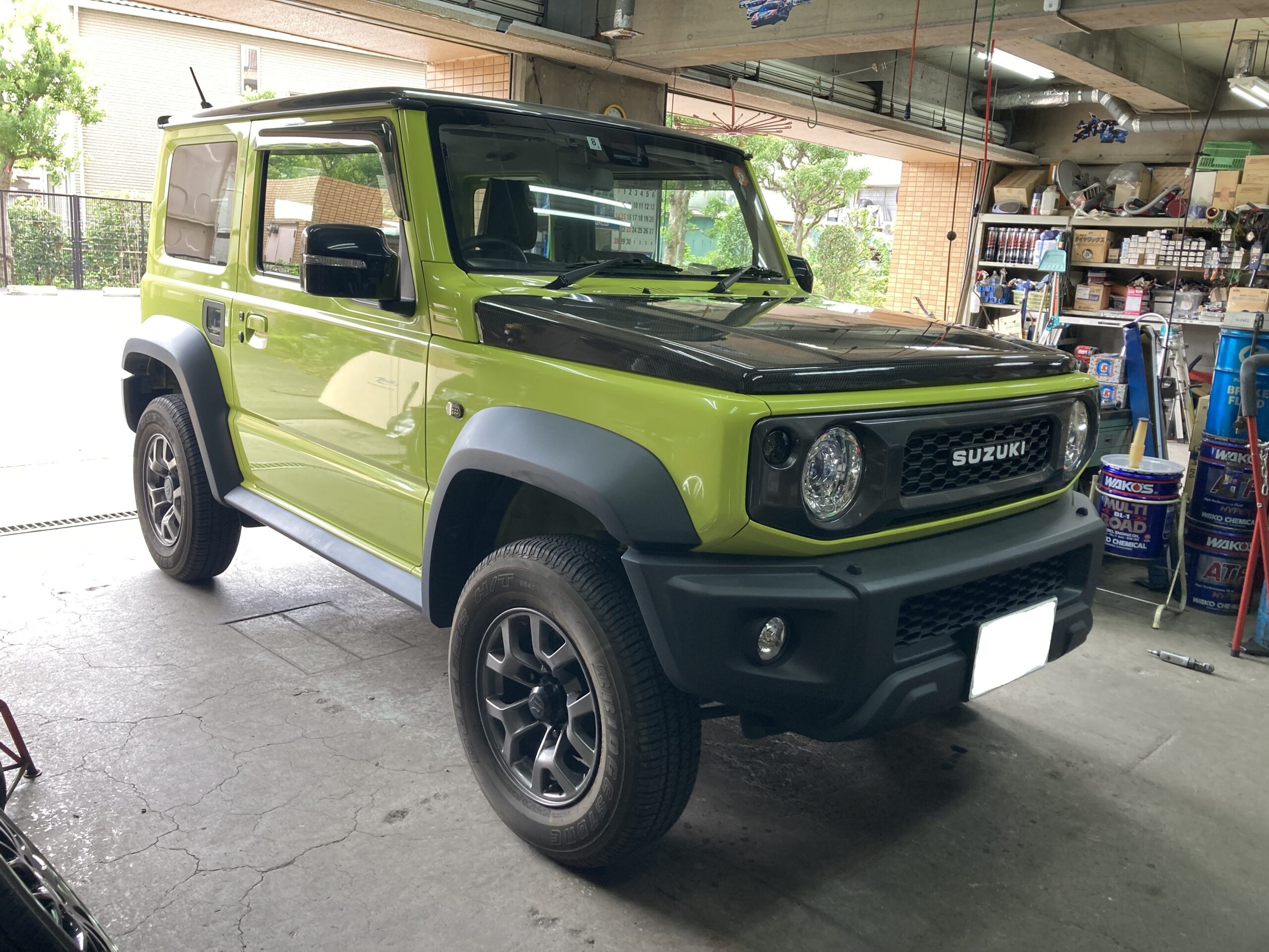 JB74型ジムニーシエラに部品お持込みで、コイルスペーサーとカーボンボネットの取付のご依頼をいただきました。ありがとうございます。