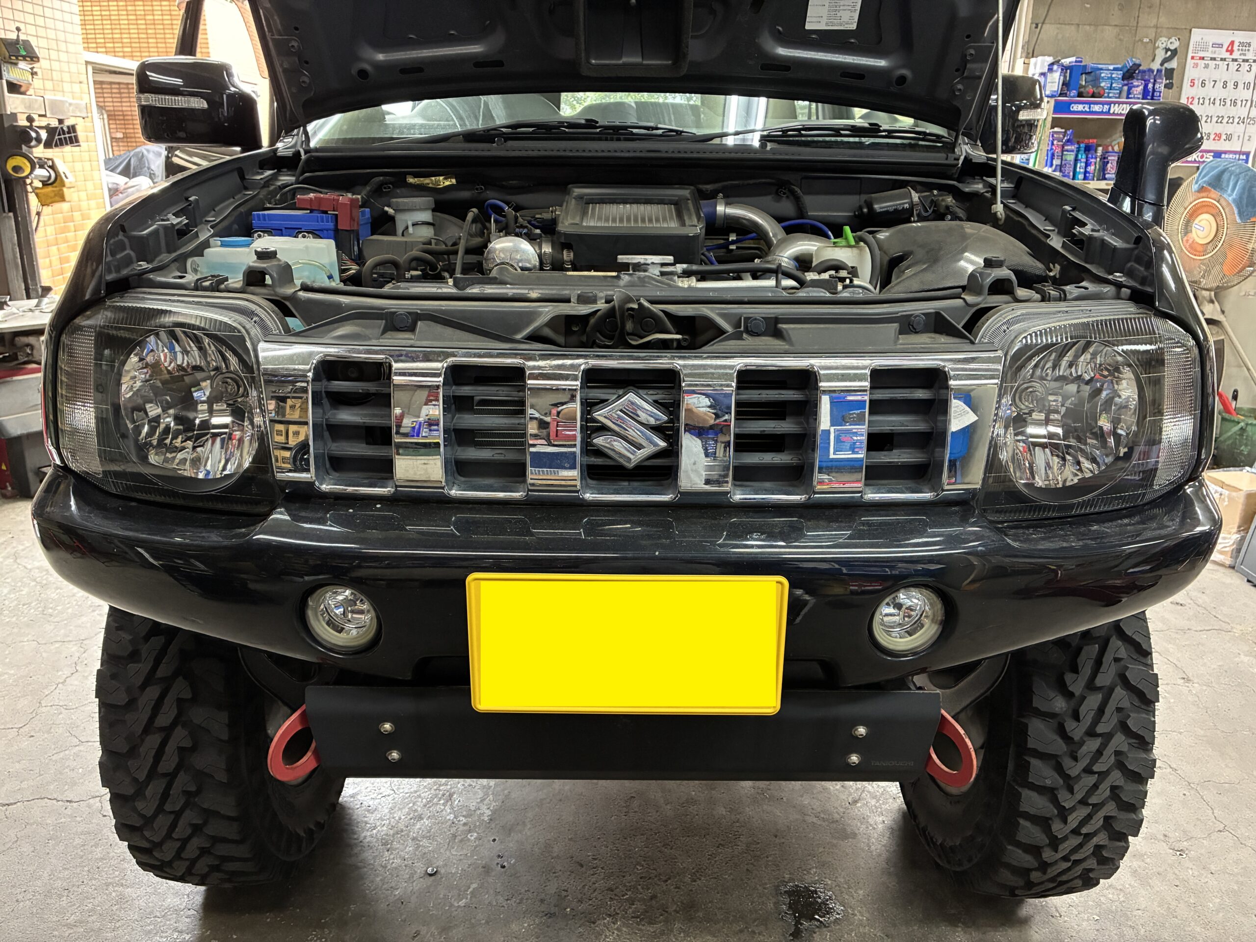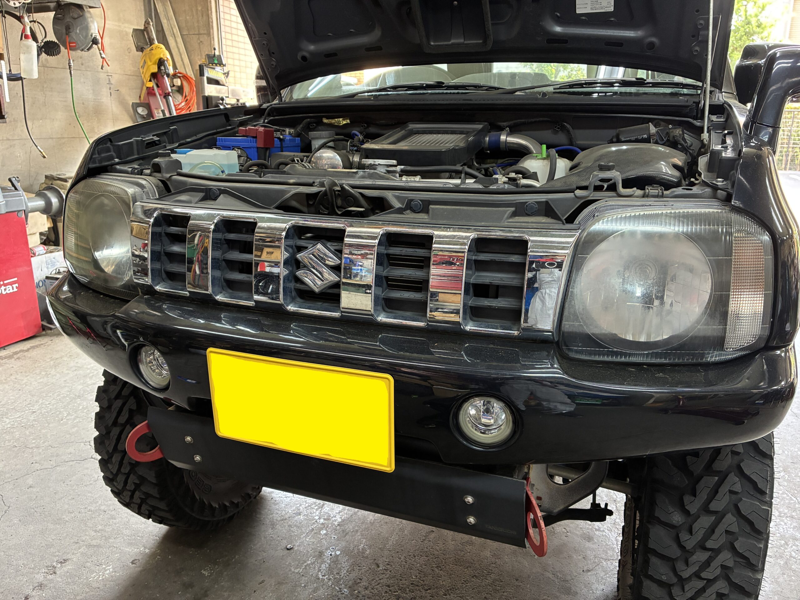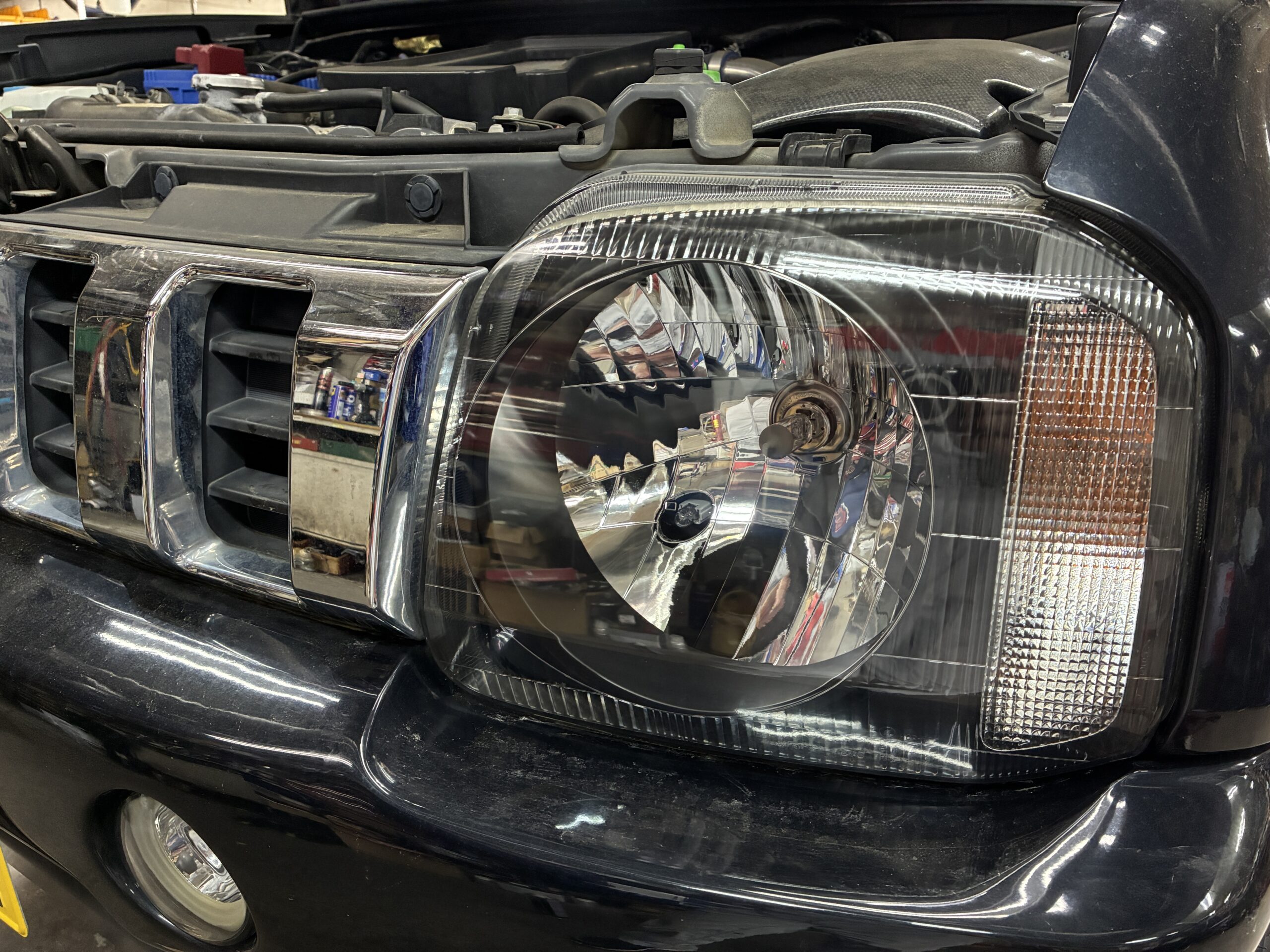 車検でお預かりしたJB23型ジムニーのヘッドライトコーティングのご依頼をいただきました。ありがとうございます。