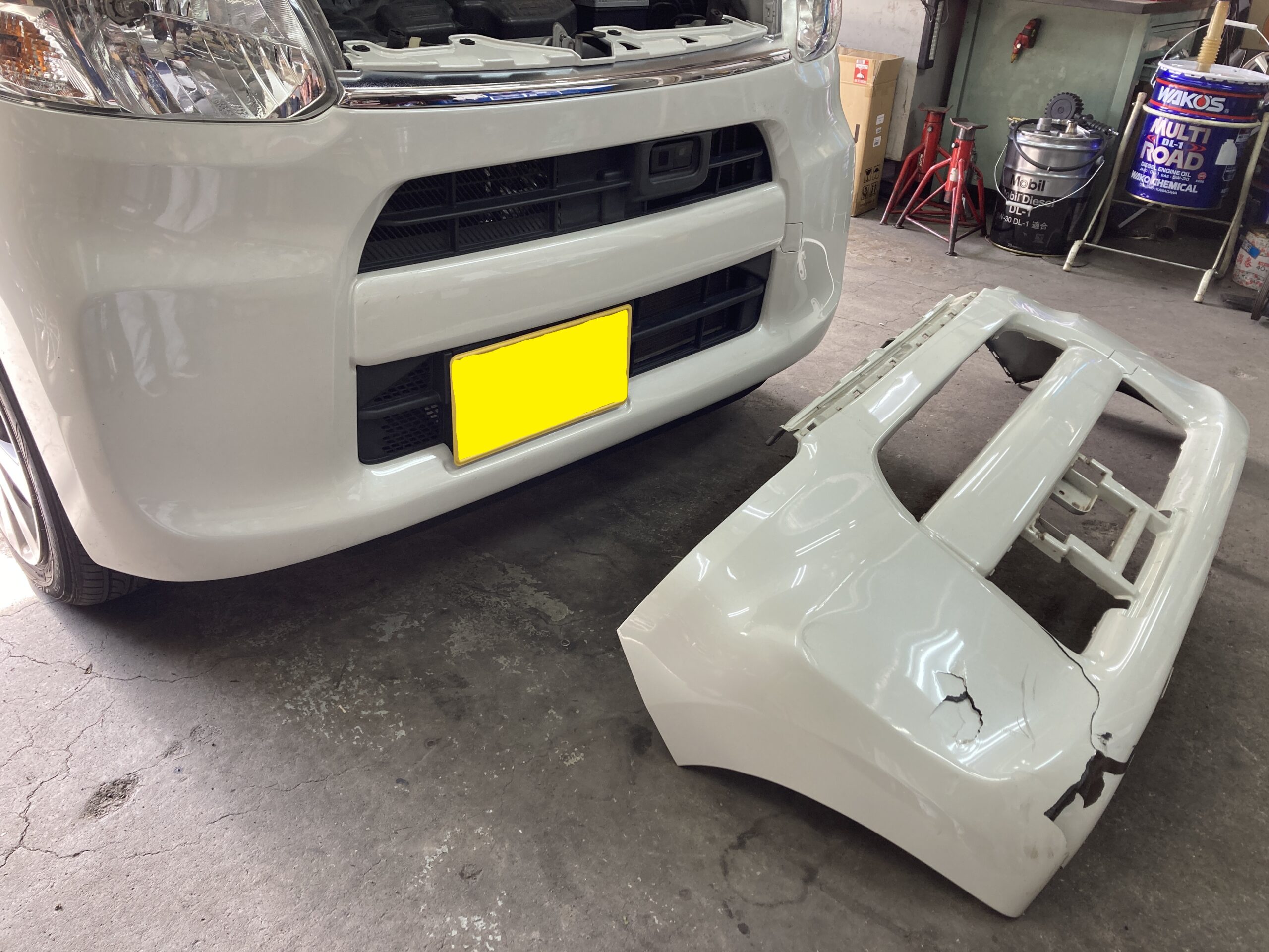 バンパーの脱着や交換は、頻度の高い作業なので、交換作業はすんなり終了しました。