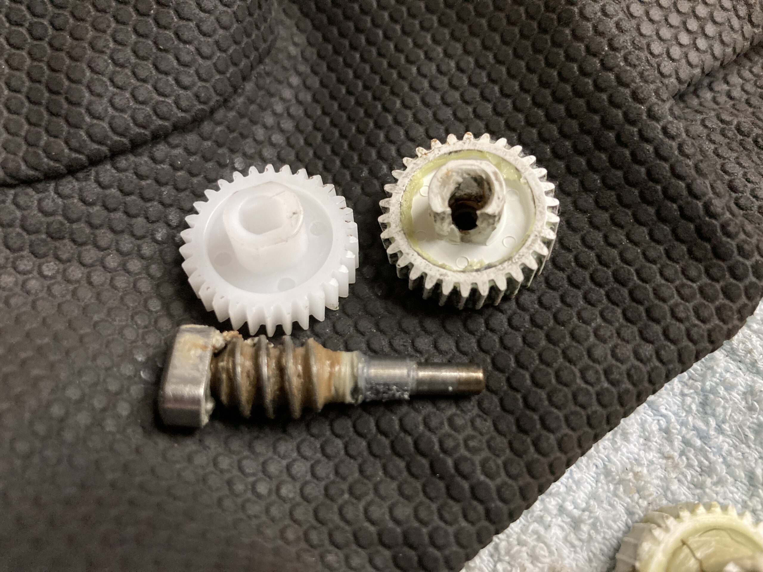 この割れているギヤを交換して、元通り組み上げれば完成です!このお車は左右故障していたので、左右交換いたしました。